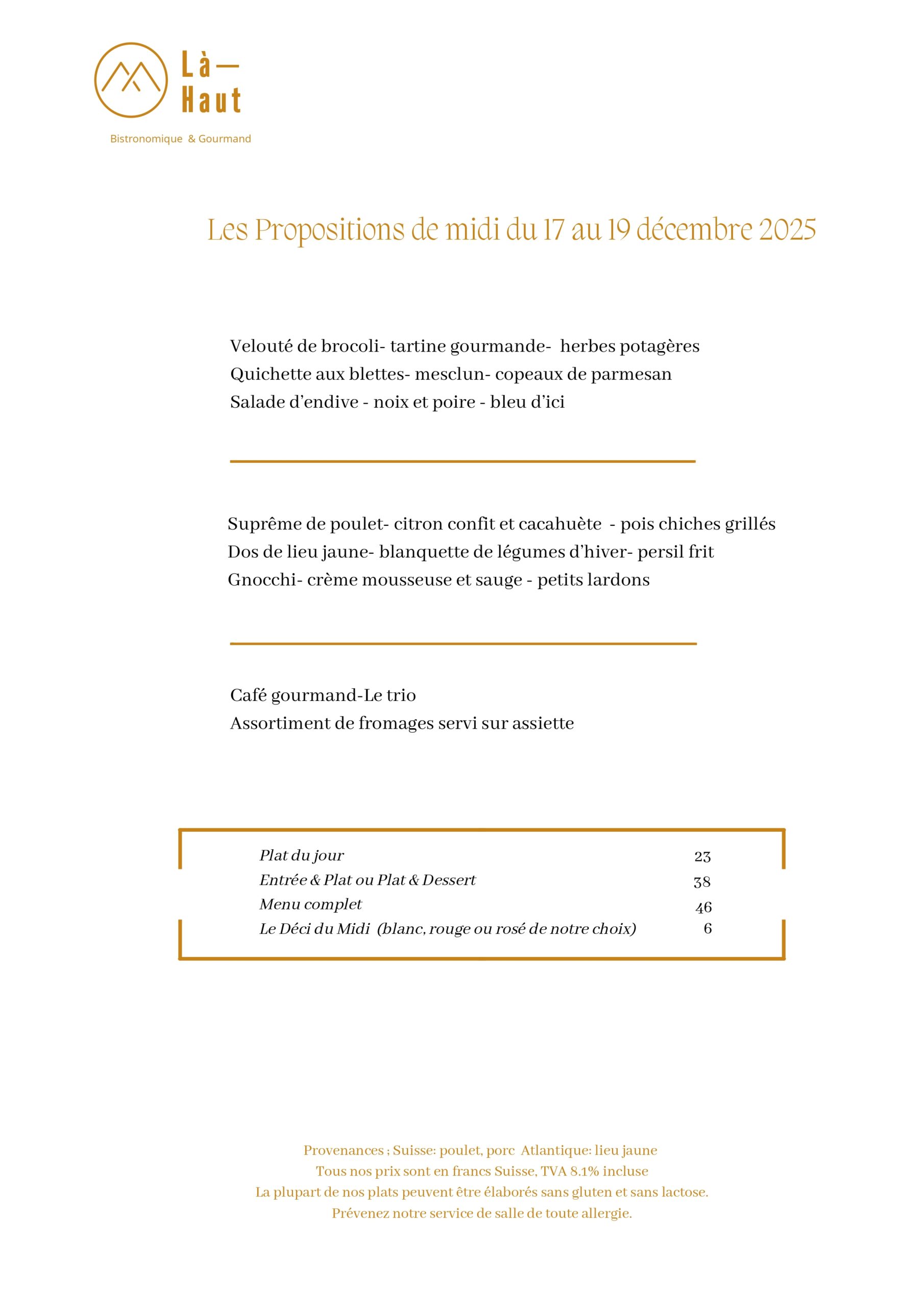 Les Propositions du midi du 17 AU 19 décembre 2025 LA CARTE Les Propositions du midi du 17 AU 19 décembre 2025 LA CARTE