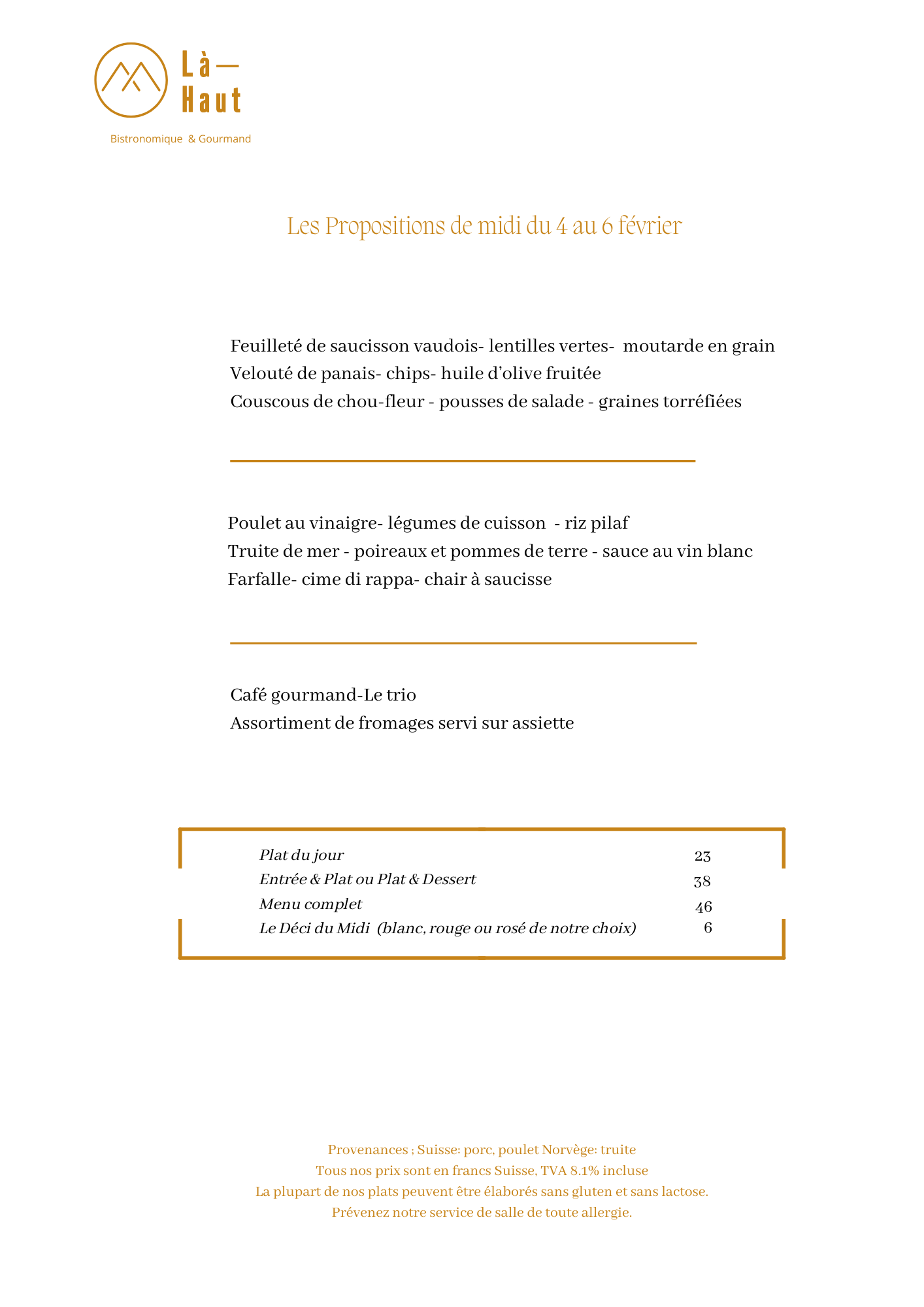 Disponible le 14 février le soir et le midi sur réservation uniquement.